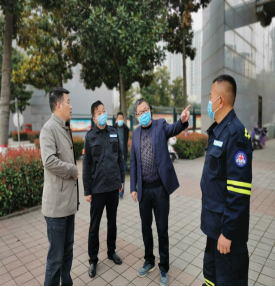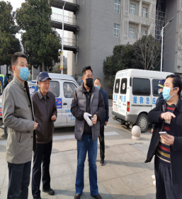 图1:刘院长介绍学院环境,确保消杀不留死角。