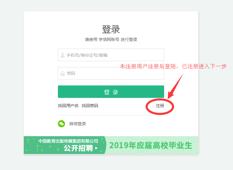 2、进入学信网官网之后找到界面右下方的登录标志,点按登录。