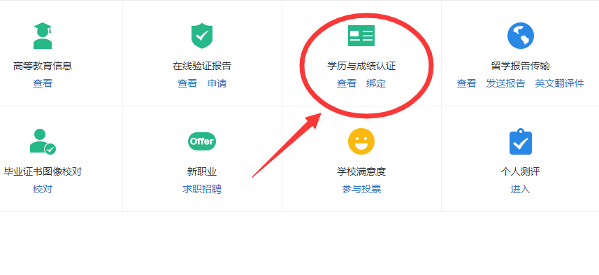 6、在之后的界面找到学历与成绩认证标志,然后点按查看标志,如下图所示。