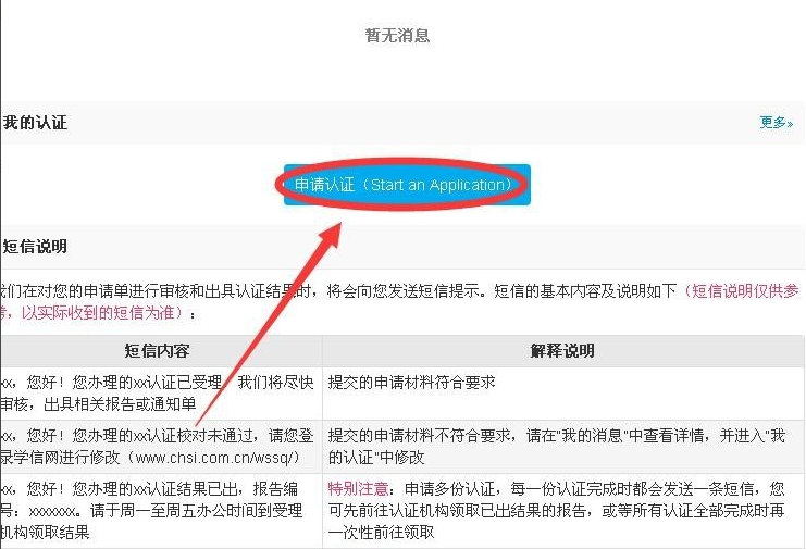 8、在之后的界面中显示了可申请的认证类型,点按下方的开始申请标志。