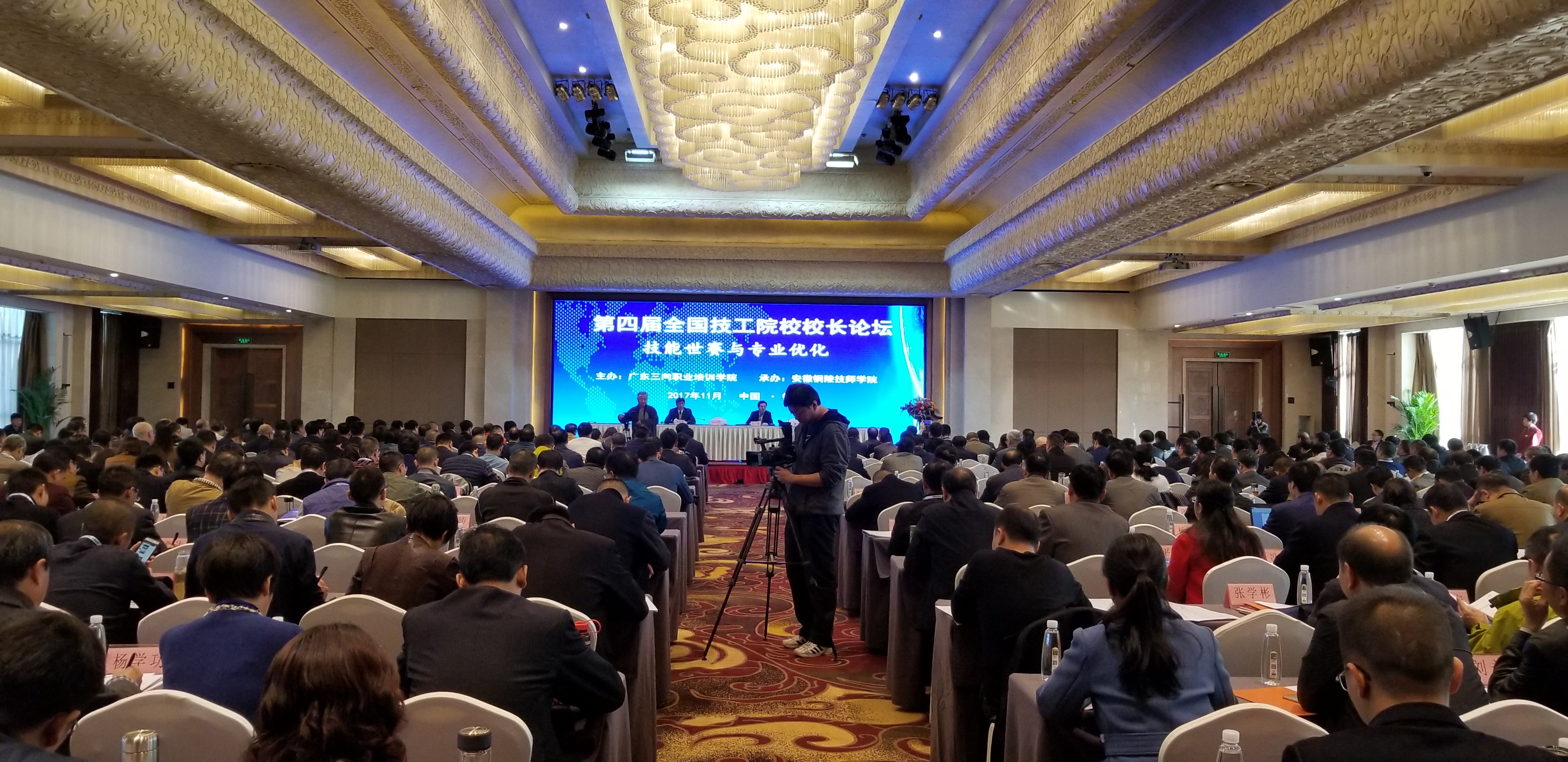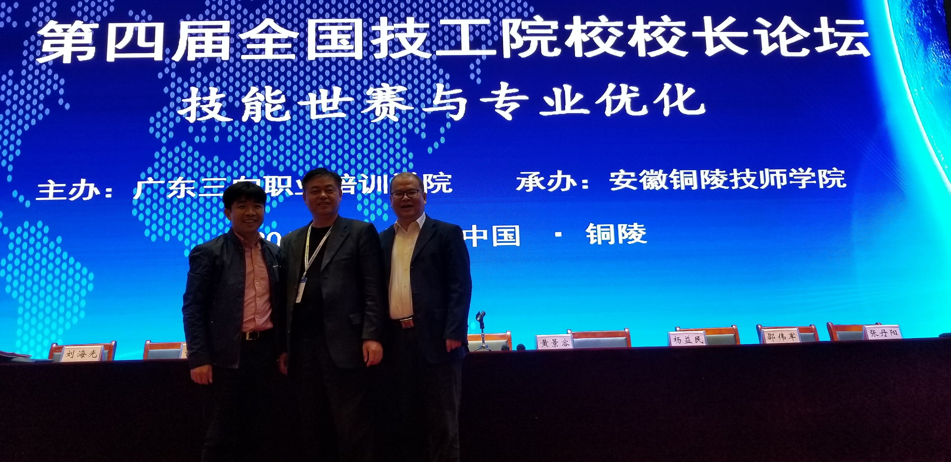 2017年11月4日-5日,由广东三向培训学院主办,安徽铜陵技师学院承办,以“技能世赛和专业优化”为主题的第四届全国技工院校校长论坛在安徽铜陵举行。人力资源和社会保障部职业能力建设司司长张立新,安徽省人力资源和社会保障厅副厅长刘少华,铜陵市人民政府副市长程双林,中国财政科学研究院教科中心主任韩风芹,安徽省人社厅职业能力建设处处长刘晓燕,吉林省人社厅职业能力建设处处长何树峰,铜陵市人力资源和社会保障局局长王振华以及来自全国200多所技工院校校长和部分省市人社部门负责人及铜陵市人力资源局有关单位领导、企业代表、新闻媒体等近450人参加了此次论坛,安博手机网页版登录入口院长杨德岭带队应邀出席。